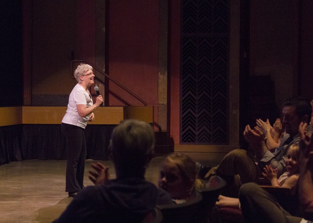 The audience claps as dance instructor Mary Sue Hosey introduces dancers from The Dance Studio on Friday, June 22, in the Buskirk-Chumley Theater. The team of dancers performed a routine to the song “Boogie Wonderland" by Earth, Wind & Fire.