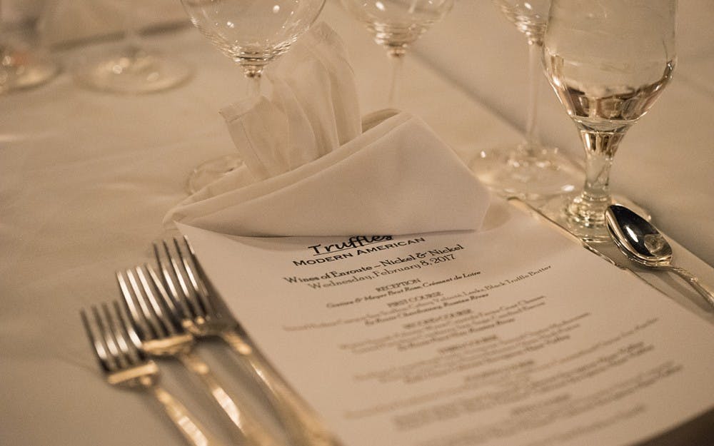 This five course meal along with various wine samplings was served at Truffles Restaurant Wedesday night. Couples and friends came to the restaurant to celebrate and talk as they drank wine and ate.