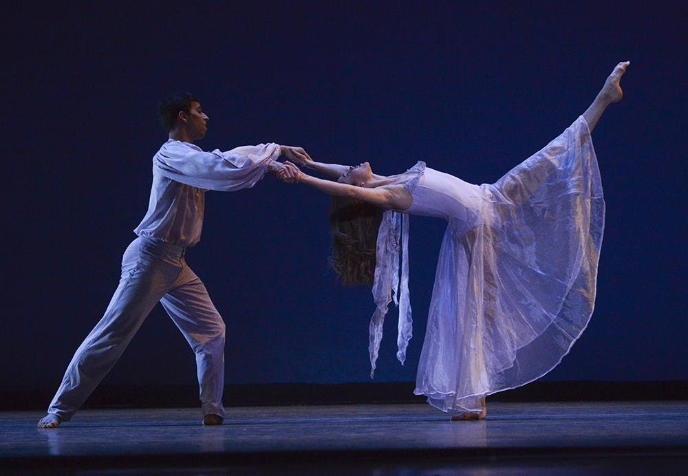 Cara Hansvick and Colin Ellis perform Elegie during rehersals for the spring ballet Four Faces of Balanchine on Wednesday at the Musical Arts Center. Haley Ward and Haley Ward