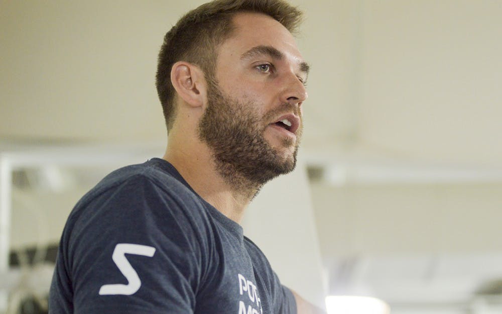 Hoosier Crossfit owner Shaun Tieman hypes Bloomington residents up for Crossfit with a cop Saturday morning. Officers from both the Bloomington Police Department and the Indiana University Police Department came out to bond with citizens and IU students through intensive crossfit exercises.