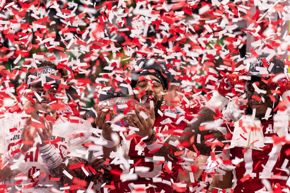 Senior wide receiver Elijah Sarratt celebrates winning the CFP Semifinal game against Oregon on Jan. 9, 2026, at Mercedes-Benz Stadium in Atlanta. Sarratt scored two touchdowns in the game.