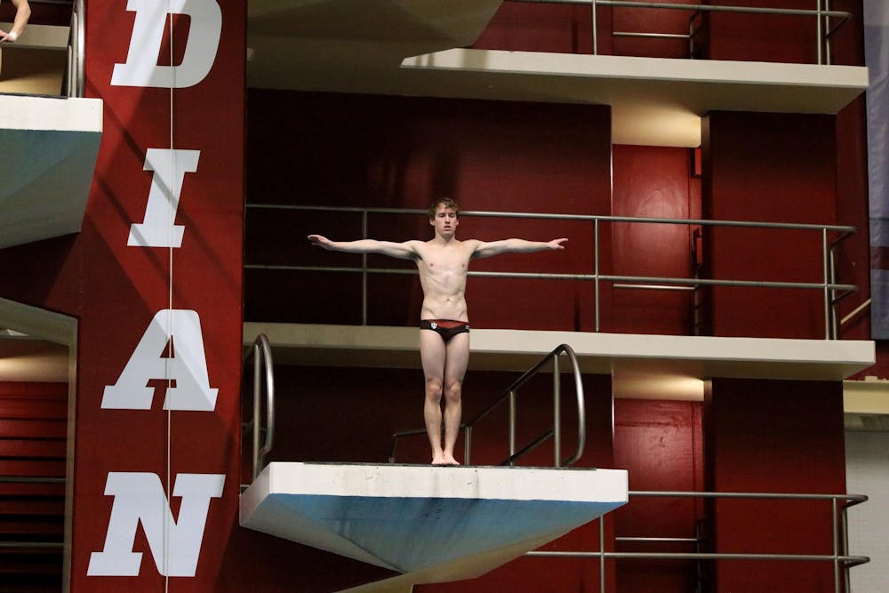 Carson Tyler exhales before attempting a dive during practice Jan. 16, 2026, at Counsilman-Billingsley Aquatics Center. His last competition with IU was in spring 2025 but still practices under IU head diving coach Drew Johansen.