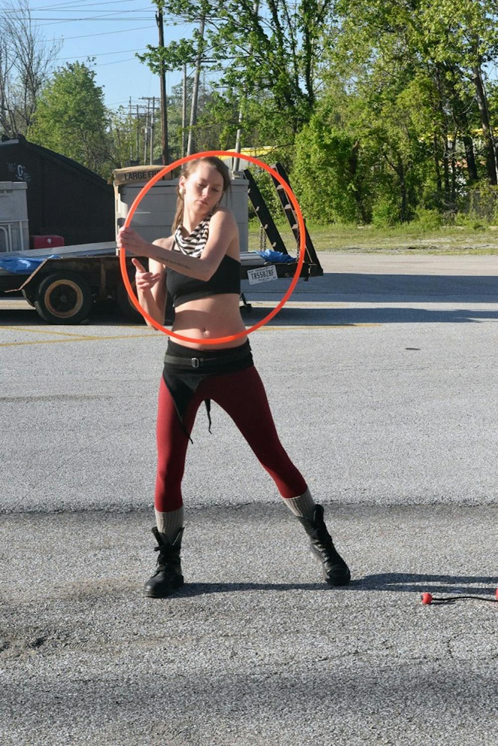 Kat Cochran practices before her performance at the Burl and Ingot Community Benefit Concert at Artisan Alley Sunday evening.
