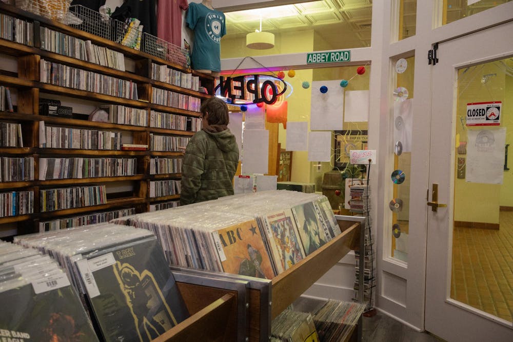 A person looks through CDs Nov. 7, 2025, inside Rewind Records in Bloomington. Its co-owner made a Facebook post in early November offering free records and CDs to SNAP users who had lost their benefits.