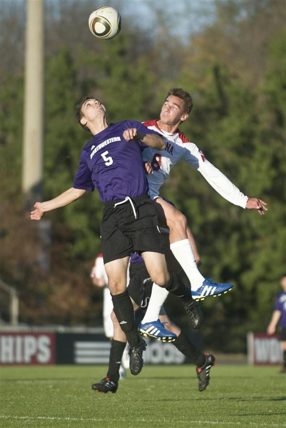Freshman midfielder Nikita Kotlov challenges Northwestern's Cody Stanley during IU's 3-2 win against the Wildcats on Sunday at Bill Armstrong Stadium. Peter Stevenson