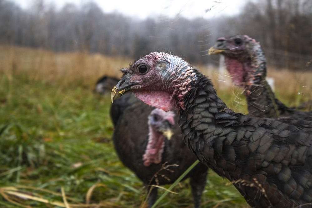 A turkey’s beak is filled with food Nov. 15. Haley Klezmer