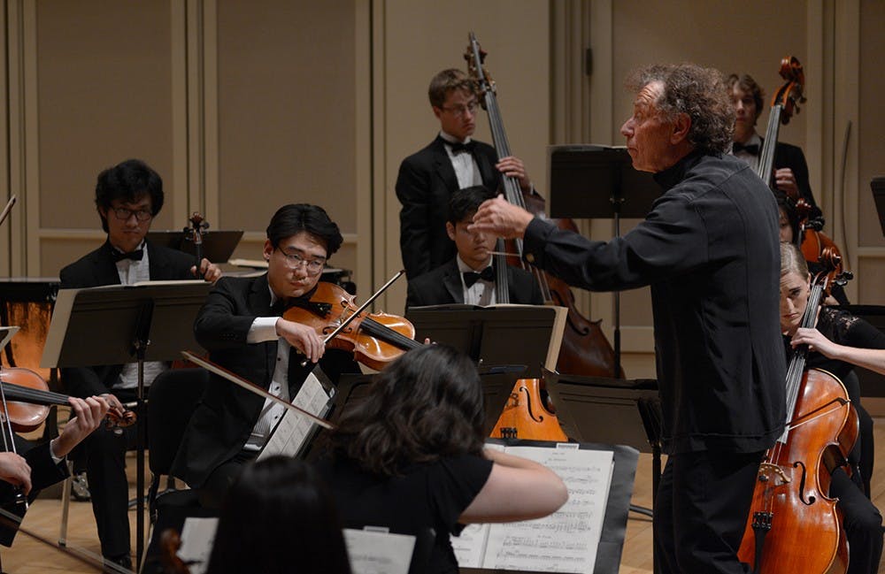 Guest conductor Christof Perick leads the Chamber Orchestra performs Pulcinella Suite by Igor Stravinsky on Wednesday evening at Auer Hall. Tiantian Zhang and Tiantian Zhang