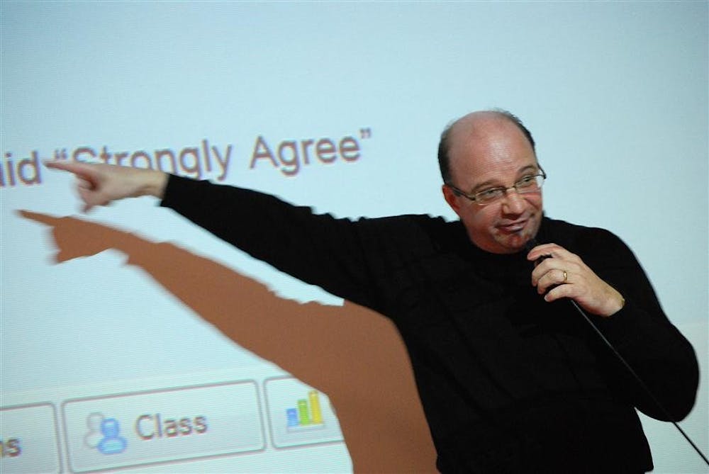 Erick Janssen points out the large variations in sexual arousal that exist between people Wednesday in the Kinsey Institute. Janssen was participating in the event "Sex Research: Live" in which researchers polled the audiences about their sexual habits and discussed the results.