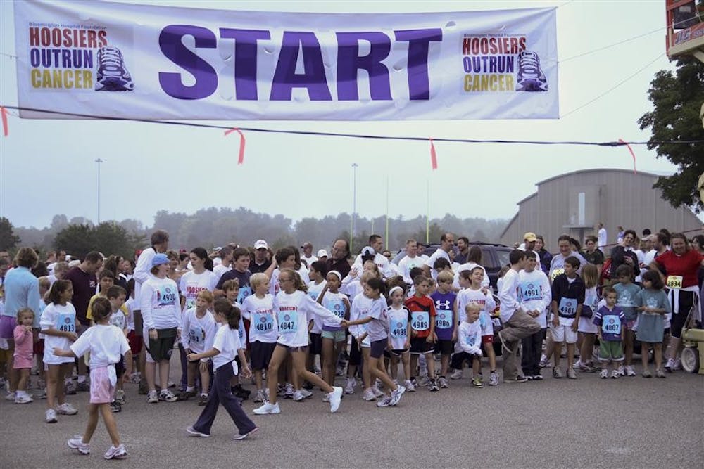 A large group of children prepare for the kids one mile run at the Hoosiers Outrun Cancer 5k Saturday morning at Memorial Stadium. Kids of all ages participated in the race.