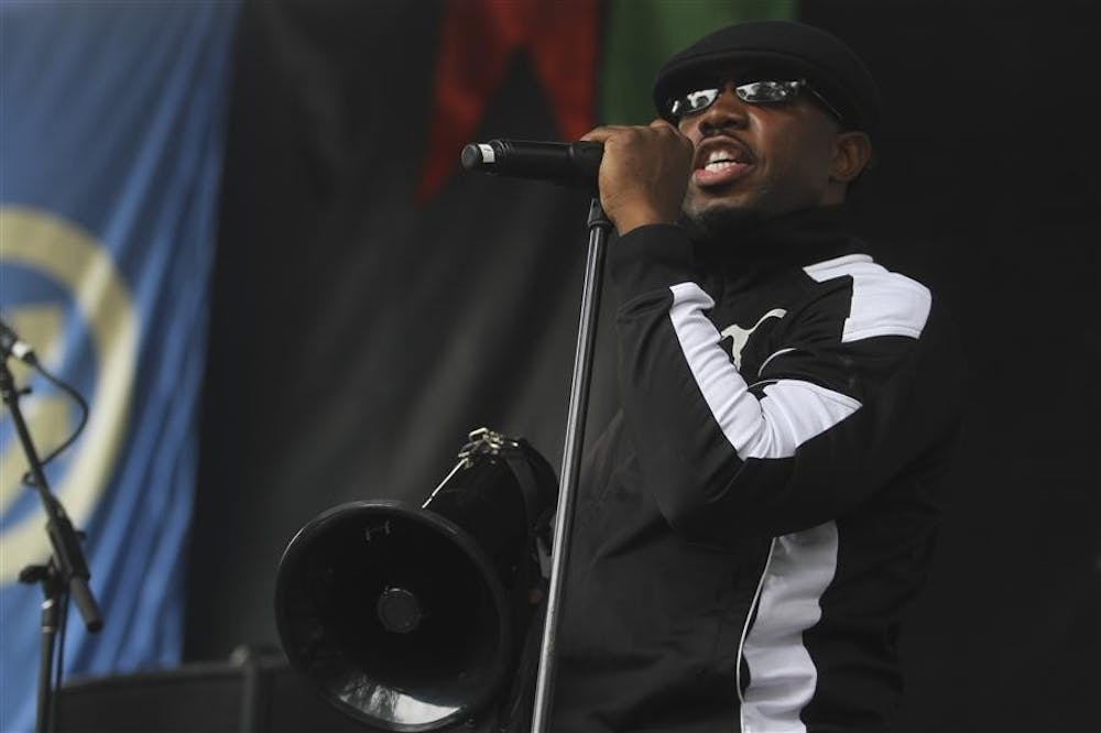 MC Zulu performs alongside Chrissy Murderbot at the Pitchfork Music Festival in Chicago on Saturday.