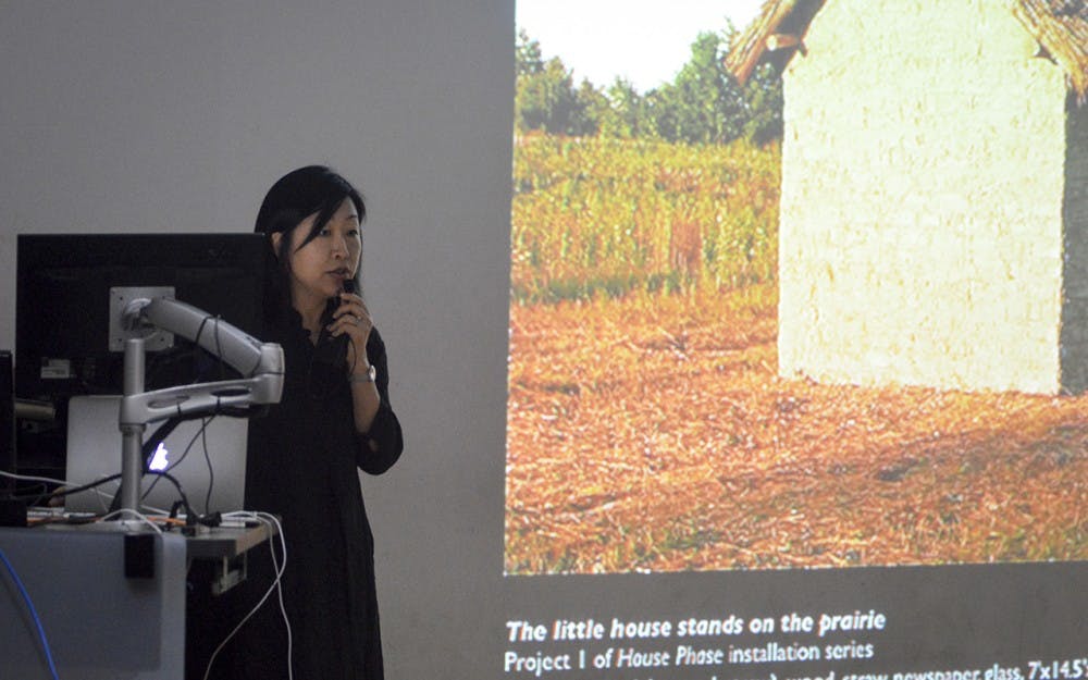 World renowned artist Beili Liu discusses her life in China and showcases her organic art style during her presentation Wednesday evening in the School of Fine Arts. Liu’s presentation is in preparation of the launch of her exhibit “After All (Mending the Sky)” in Grunwald Gallery this Friday.