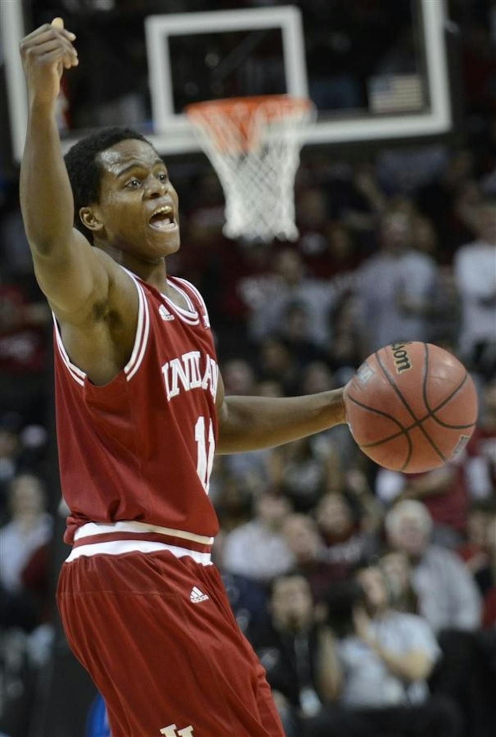 Freshman guard Kevin "Yogi" Ferrell shouts across the court during the Hoosiers' 82-72 victory against Georgetown on Tuesday at the Progressive Legends Classic at Barclays Center. Steph Langan