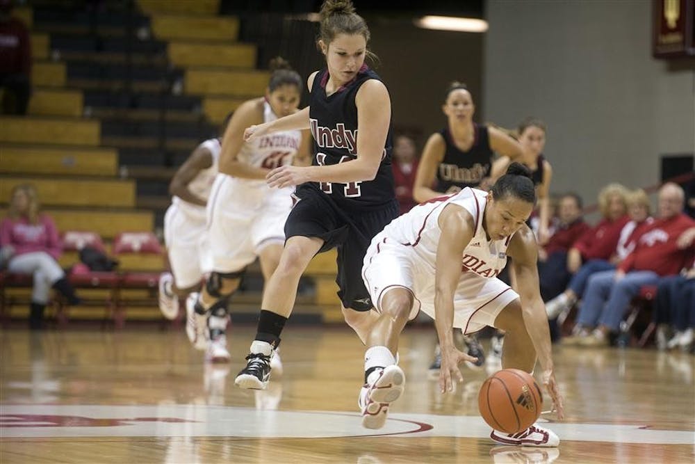 Senior guard Whitney Lindsay steals the ball during IU's 76-41 win against Indianapolis on Saturday at Assembly Hall. Peter Stevenson