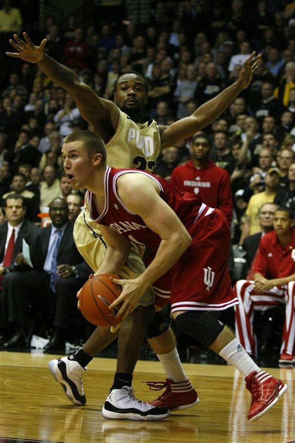 Indiana guard Jordan Hulls tries to get past Purdue defender Lewis Jackson Saturday at Mackey Arena. Mark Felix
