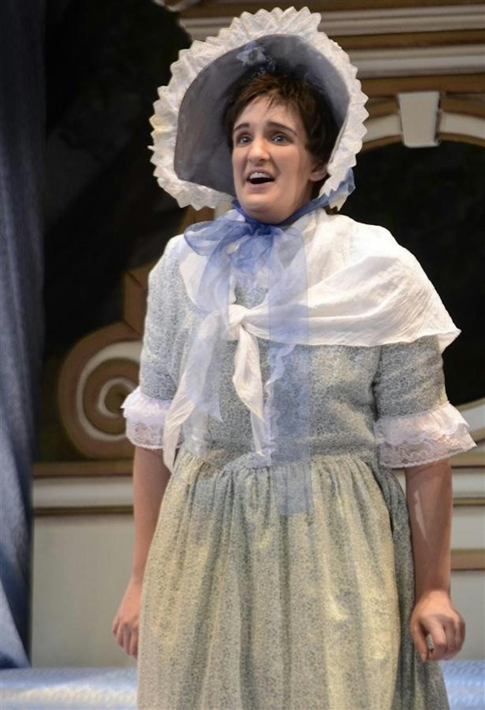 Performer Sarah Ballman practices the German opera "Der Rosenkavalier" during a dress rehearsal Monday at the Musical Arts Center. This production is the opera's first at IU in more than 40 years. "Der Rosenkavalier," created by Richard Strauss, is roughly four hours in length and was originally performed in 1911.
