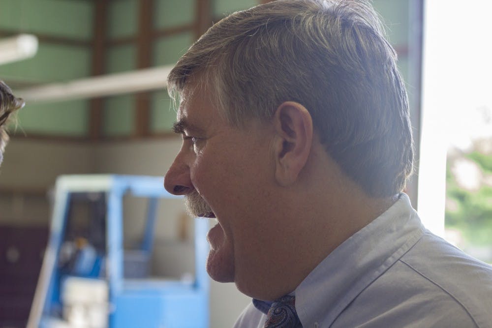 Bloomington Police Department Chief Mike Diekoff answers questions about BPD’s new Lenco BearCat armored vehicle July 10 in the Switchyard Operations building. Matt Begala