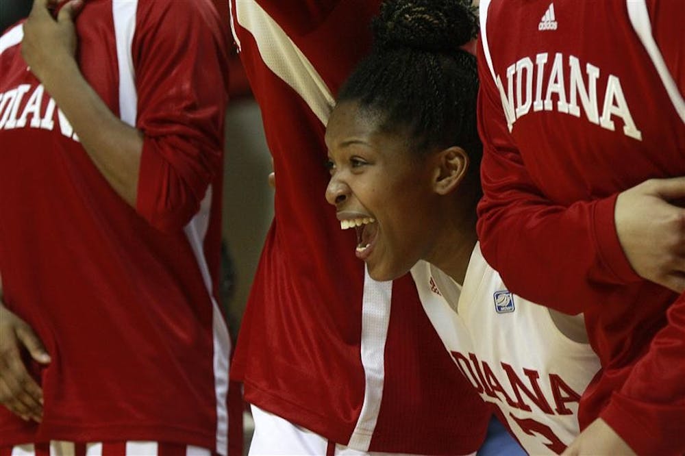 Freshman guard Candyce Ussery yells after IU sinks a free throw at the end of the team's 62-60 win against Wisconsin on Thursday at Assembly Hall. Mark Felix