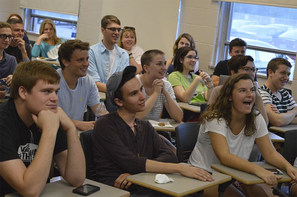 Students gather at Ballantine Hall on Wednesday evening for the College Democrats' "Trumpapalooza." Entertainment kicked of with a game of "Whoose line is it anyway?" with Donald Trump and other media stars as the main topics. Andrew Williams and Andrew Williams