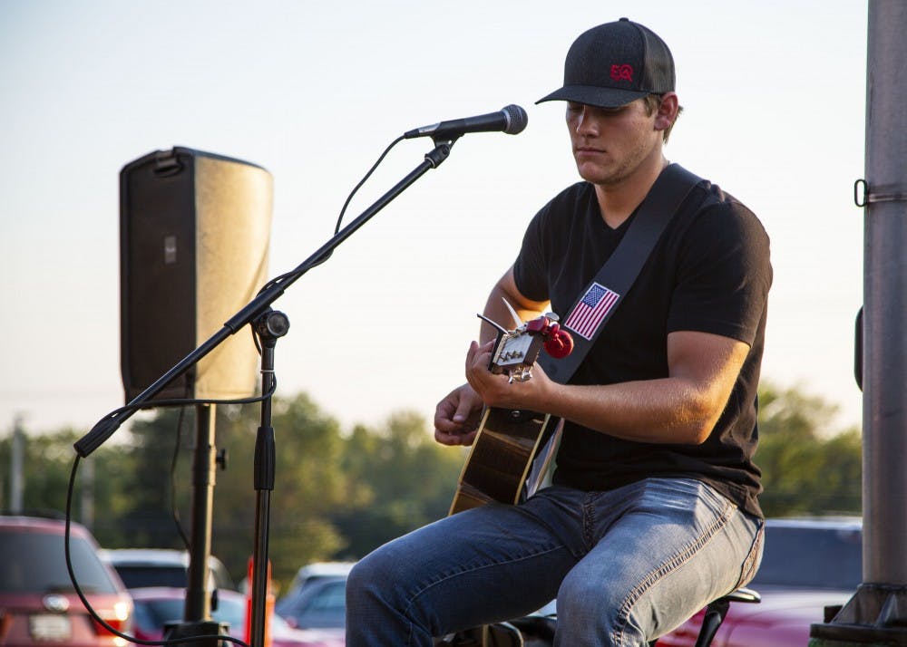 Singer Reece Phillips performs songs Sept. 20 at the benefit for IU student football manager Mike Stauder in the parking lot of Wagon Wheel Custom Meats. Phillips is a former IU baseball player and aspiring country singer. Matt Begala