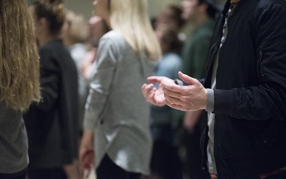 Students from CRU and Chi Alpha sing "Here as in Heaven" at the Carry the Love worship night on Monday in the Wilke Auditorium. The event featured the Carry the Love worship band and speakers who spoke about mission trips.
