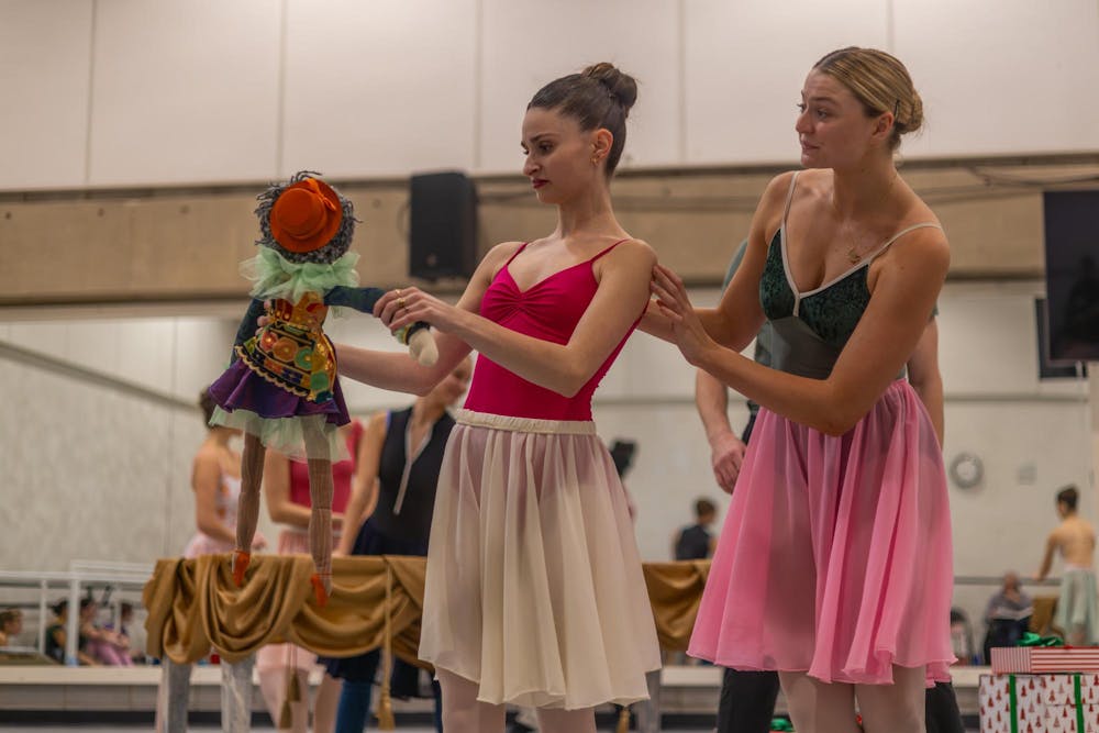 Ella Sperry (left) and Maddie Muth (right) rehearse "The Nutcracker" on Nov 21, 2025, at the Musical Arts Center in Bloomington. Sperry played Marie and Muth played Frau Stahlbaum.