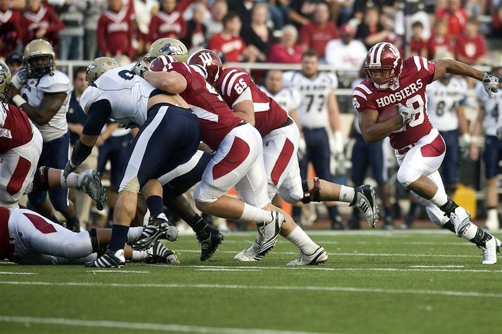 Sophomore running back Darius Willis looks for a gap in the line during the first quarter of IU's 35-20 win against Akron on Sept. 25 at Memorial Stadium.