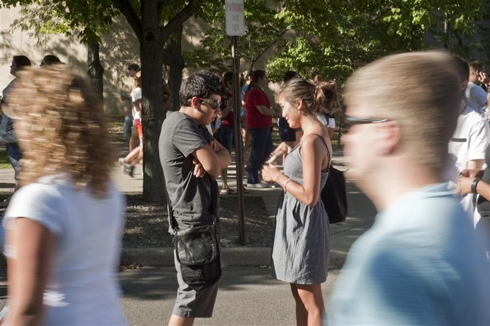 Students talk in the middle of 7th St. during CultureFest on Thursday at Showalter Fountain. Peter Stevenson