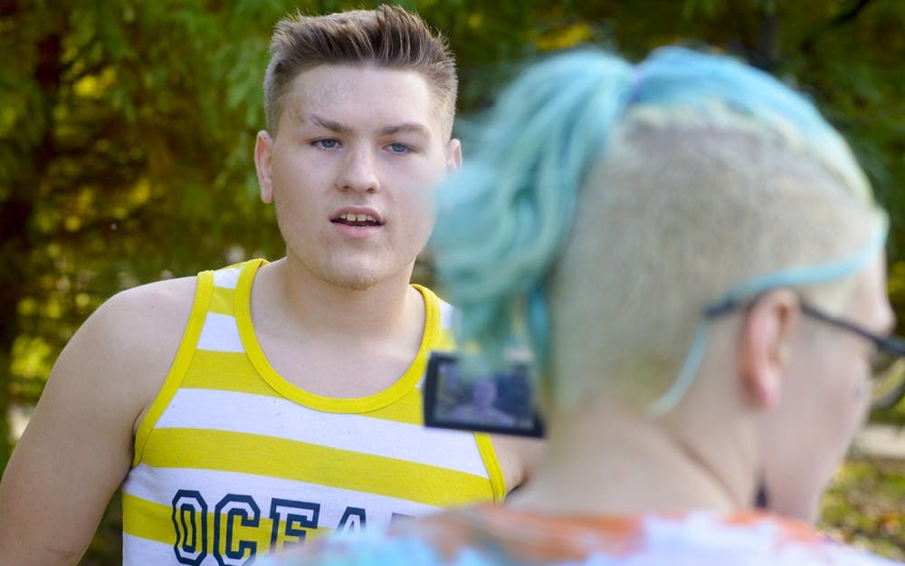 Freshman Austin Hombert shouts out his disgust with current drug laws on camera during the Weed Legislation Rally Saturday afternoon in Dunn Meadow. Andrew Williams and Andrew Williams