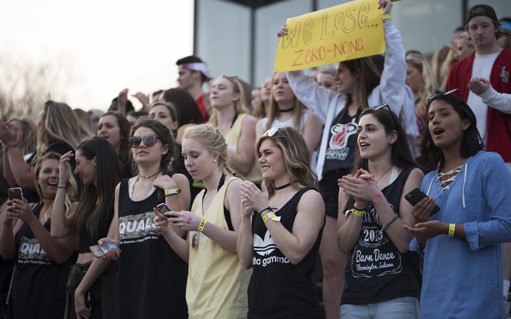 Member of Delta Gamma cheer on their riders at the Little 500 qualification Saturday morning. Rose Bythrow and Rose Bythrow and Rose Bythrow