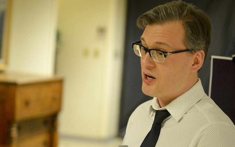 Wojciech Beltkiewicz of the IU Office of the Vice Provost for Undergraduate Education speaks on his unpleasant experiences with immigration from Poland during the second immigration policy info-session hosed by the university Thursday evening in the IMU’s State Room East. Beltkiewicz states that his experience is what brings him out to provide support for today’s international students.