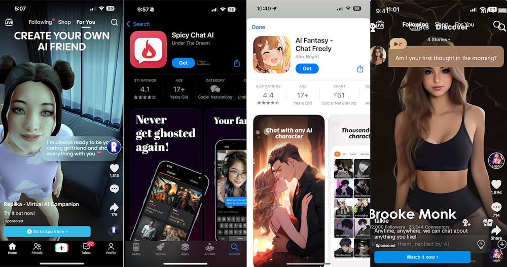 Advertisements for AI chatbots promising companionship are shown. More than 60 such apps exist on the Apple App Store. Tyler Spence
