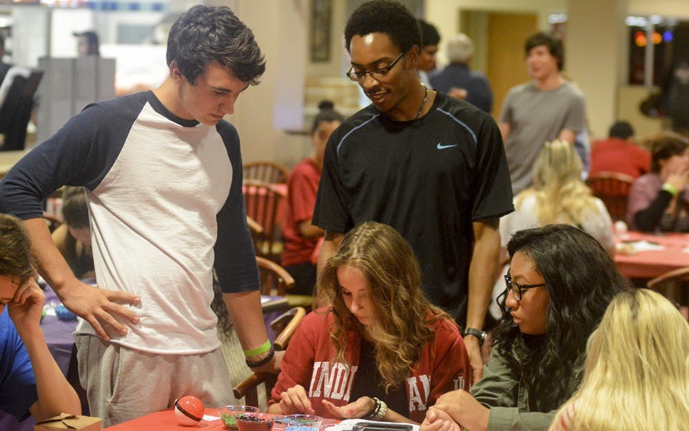 Groups of IU students came out to craft pokéballs, Pokémon keychains, and other poké-accessories during the IMU Late Nite event Friday night at the IMU. This Pokémon themed Late Nite also hosted Inflatable games in Alumni Hall and a performance by Full Frontal Comedy.