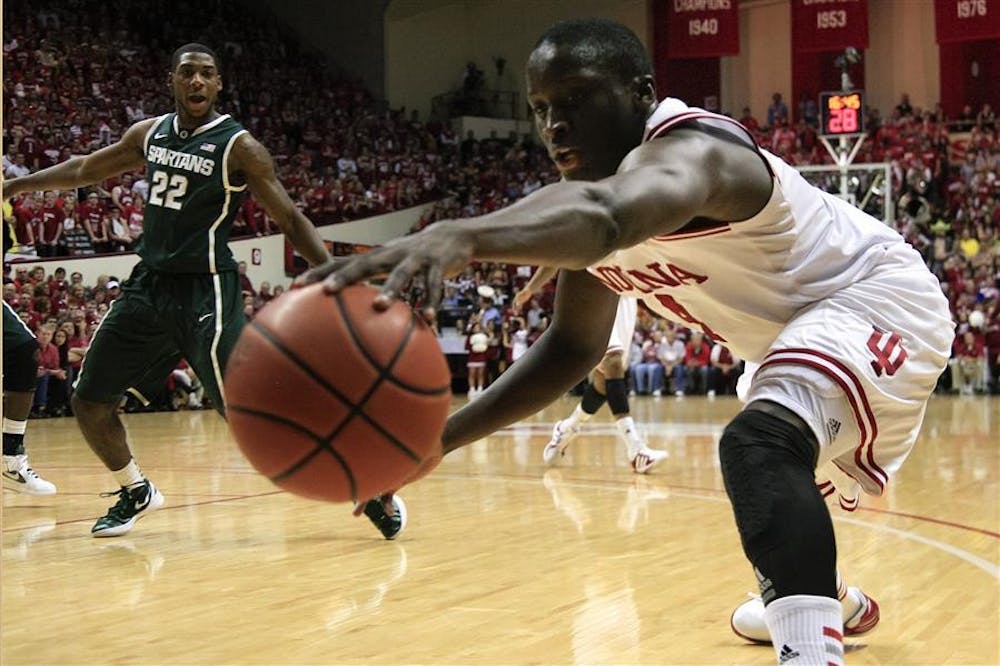 Sophomore guard Victor Oladipo unsuccessfully tries to keep a ball in play during IU's 70-55 win Tuesday at Assembly Hall. Mark Felix