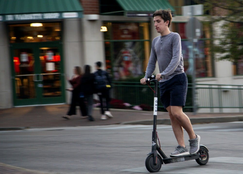 A man rides a Bird scooter Oct. 22 up Kirkwood Avenue near the Sample Gates. Matt Begala