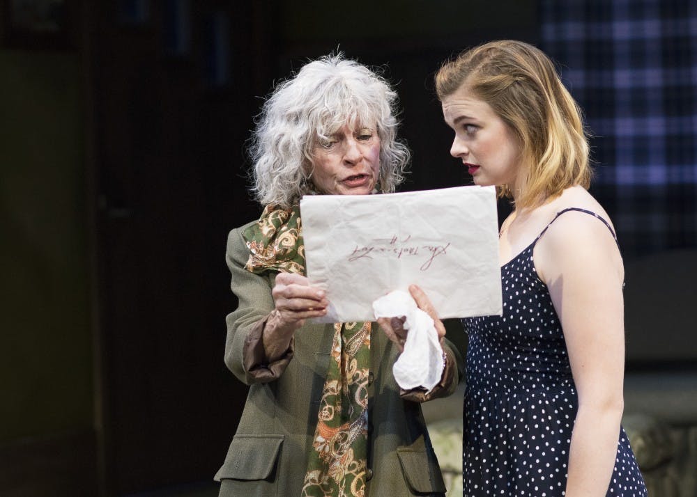 Kate Braun as Marianne and Ali Lidbury as Erica act in "Beating a Dead Horse." Bloomington Playwrights Project will put on the play, directed by Ivey Lowe, Sept. 28-Oct. 14.