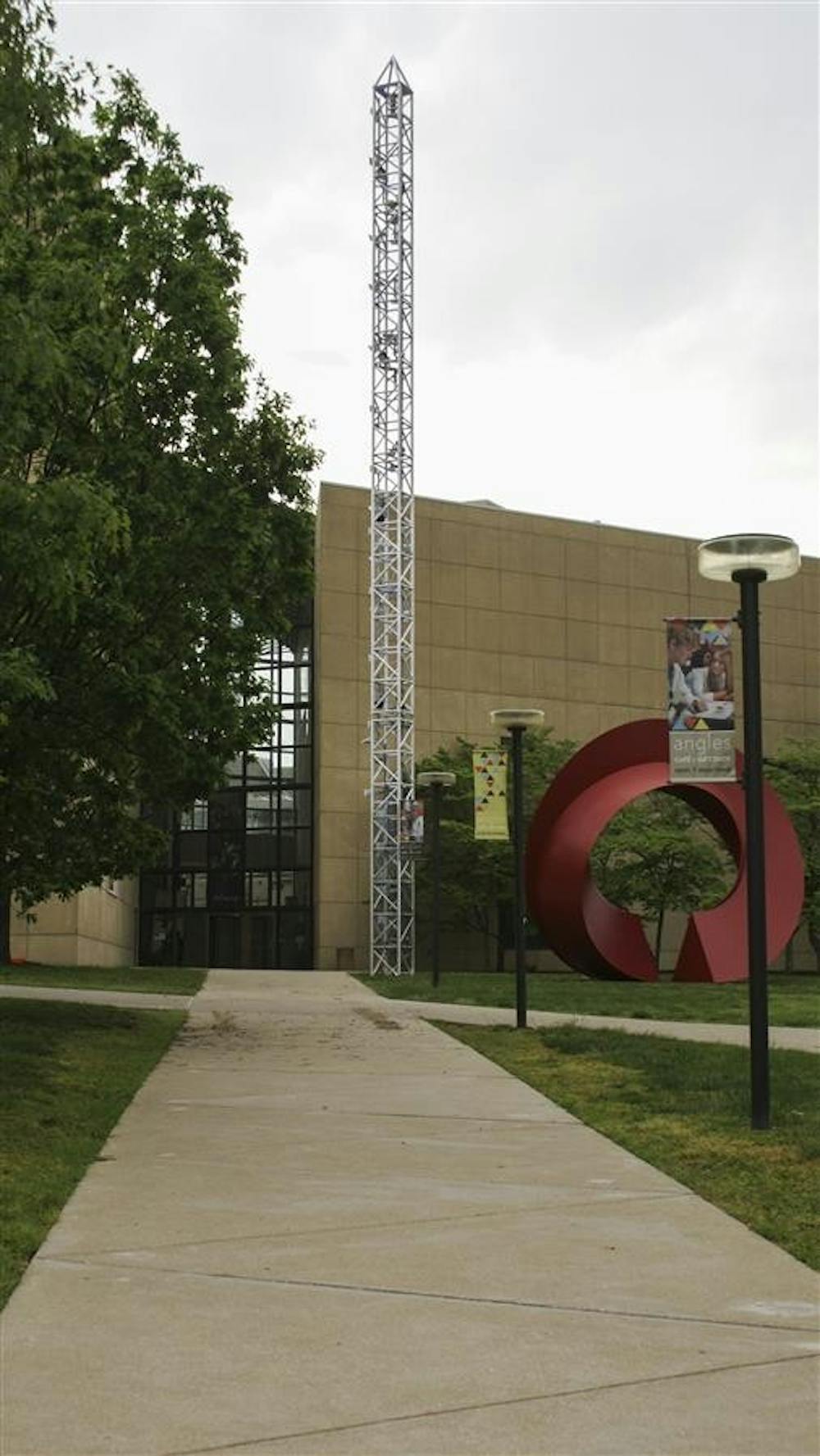 Light Totem, the tall, iconic light tower created by IU Professor of Lighting Design Robert Shakespeare, was reinstalled on the lawn of the IU Art Museum May 12. The official relighting of Light Totem will take place June 21 at the museum's annual Midsummer Night at the Art Museum event.