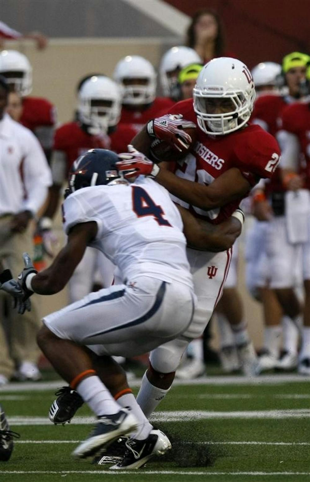 Freshman running back D'Angelo Roberts pushes past a defender on Saturday at Memorial Stadium. Mark Felix