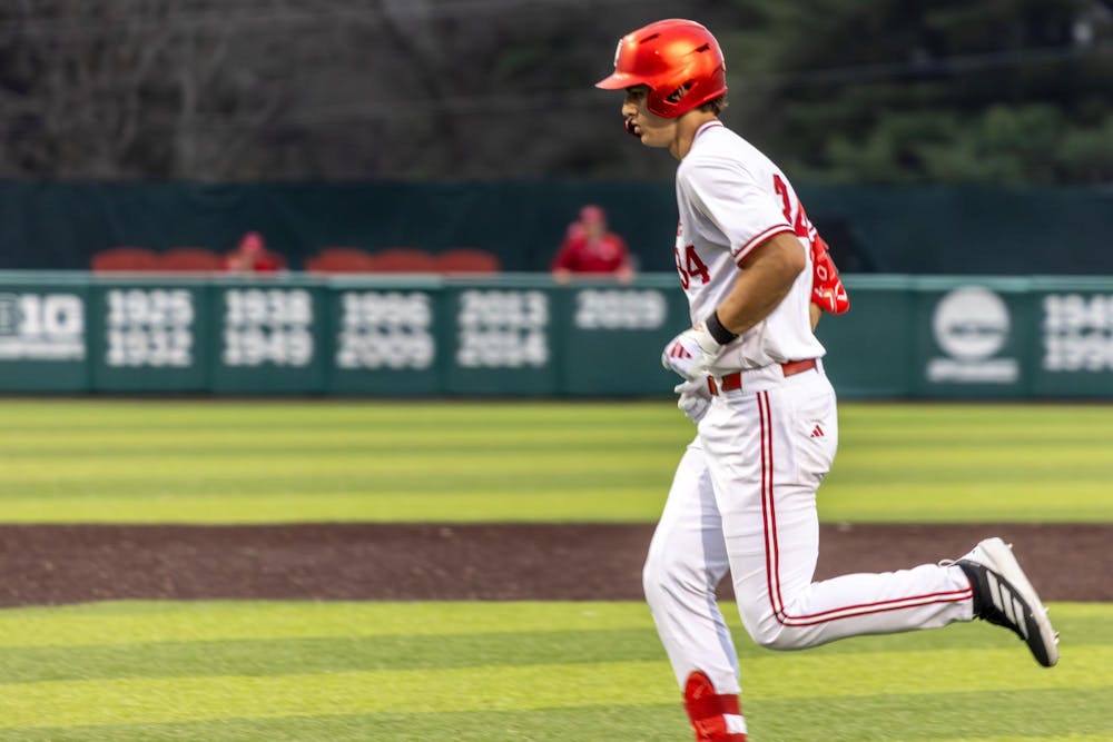 Sophomore infielder Jake Hanley runs to the dugout during the game against Wright State University on March 10, 2026, at Bart Kaufman Field in Bloomington. Hanley had two runs in the game.