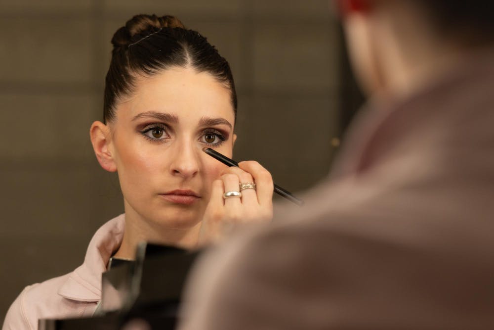 Ella Sperry does her eyeshadow before a full dress rehearsal of "The Nutcracker" on Dec. 3, 2025, at the Musical Arts Center in Bloomington. Sperry spent 45 minutes doing her makeup.