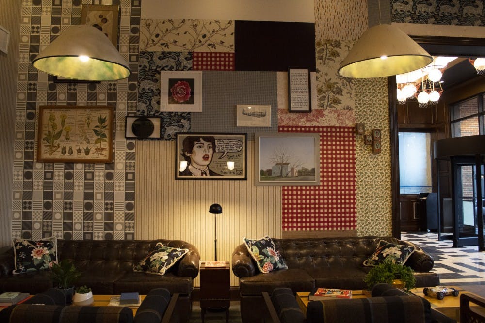 Patchwork wallpaper, artwork, plants and other decor cover the walls Dec. 4 of the Graduate Hotel.