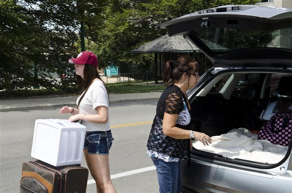 Freshman Hali Ross and mother Bev Ross move in Tuesday at Briscoe Residence Center. The official move-in day is Wednesday, but the dorms opened Sunday for early move-in. Rabi Abonour