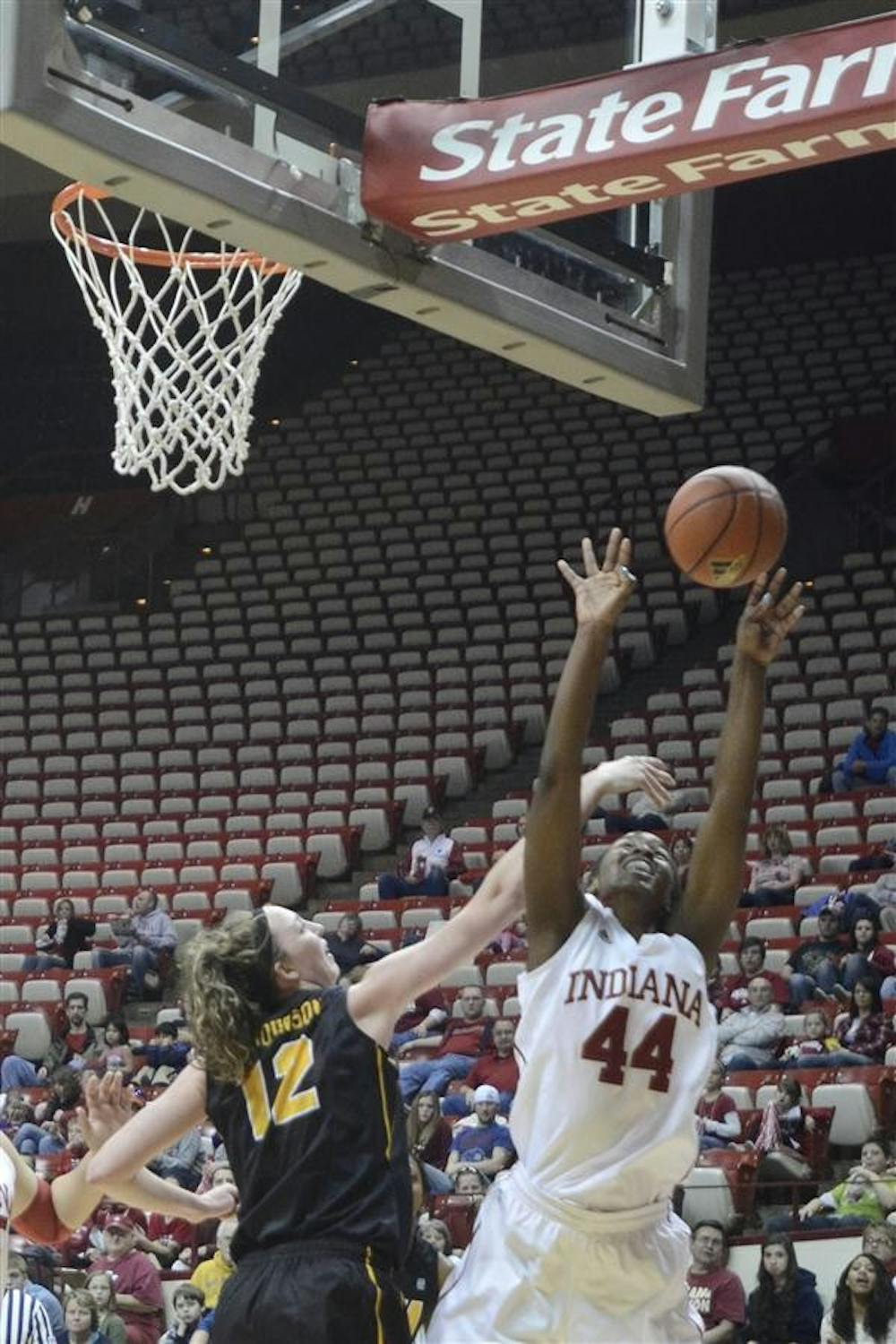 Sophomore center Simone Deloach attempts to make a basket during the Hoosiers' 83-64 loss to Iowa Sunday in Assembly Hall. Steph Langan
