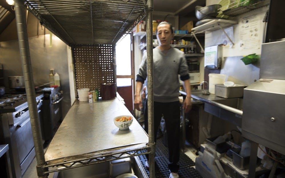 Little Tibet is one of the popular 4th street restaurants that attracts mainly college students and IU professors. Chef Pema Wangchen cleans the kitchen and gets ready to open the restaurant for dinner Wednesday night.