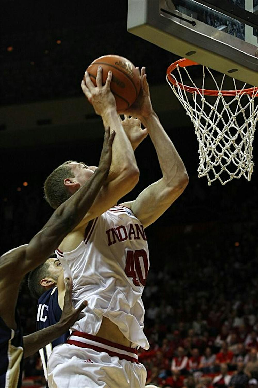 IU Freshman center Cody Zeller scores a lay up while being fouled Sunday at Assembly Hall.