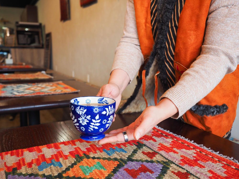 Nargis Orokzai serves tea at Kabul Corner on Feb. 5, 2026, at 305 E. Third St. in Bloomington. Orokzai said she was working alongside her husband, Farid, next door at his business, Turkuaz Café, when she decided to open Kabul Corner.