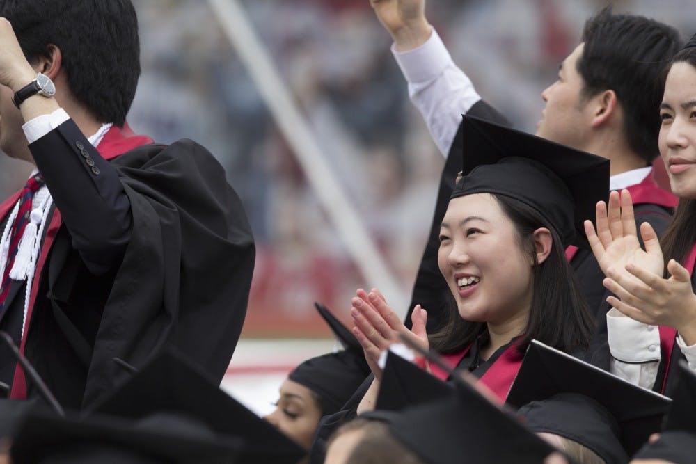 Undergraduates clap toward the end of the 2018 spring undergraduate commencement Saturday, May 5, at Memorial Stadium.