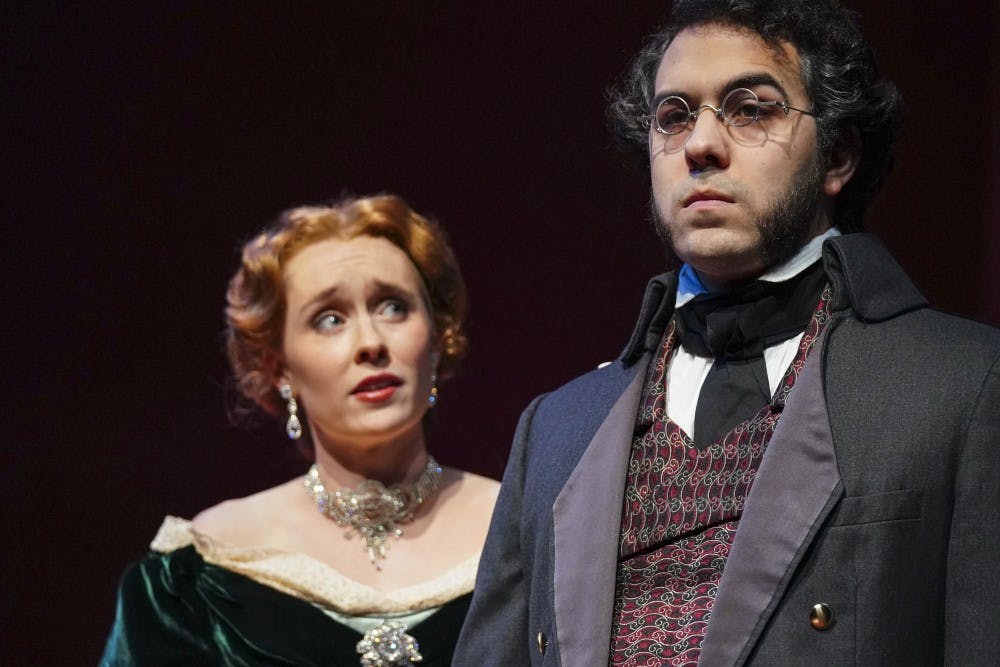 Dr. Austin Sloper, portrayed by graduate student Daniel Meeks, expresses his displeasure of his daughter’s social skills with his sister Elizabeth during a rehearsal of Ruth and Augustus Goetz’s “The Heiress” on Sept. 18 in Ruth N. Halls Theatre.