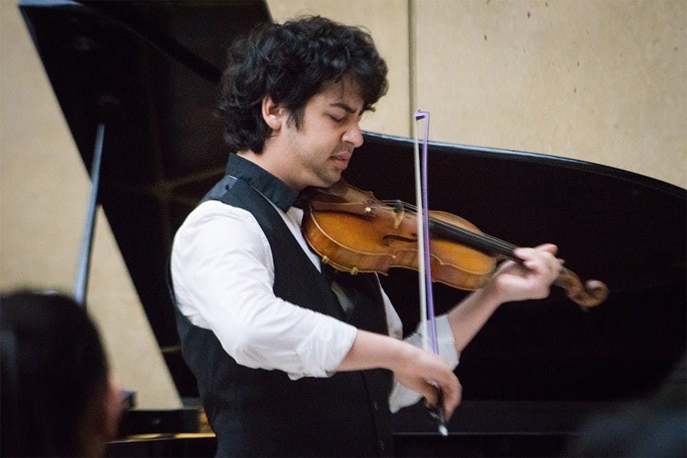 Violinist Ari Fisher performs his arrangment, "Ballad for Piano and Violin", at the East Meets West concert Sunday at the Art Museum. The concert showcased New Chinese music written for Western instruments.