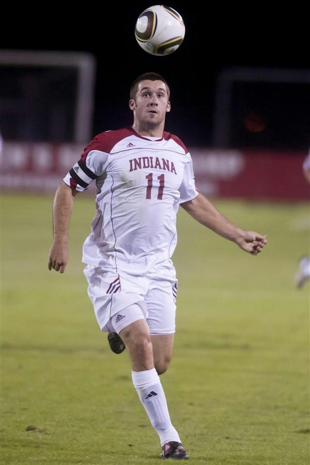 Junior forward Will Bruin chases down a pass during IU's 2-1 win against the Wolverines on Saturday at Bill Armstrong Stadium. Peter Stevenson