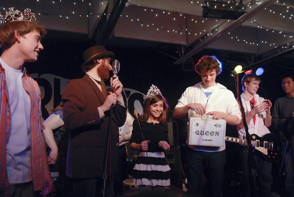 Harmony School seventh grader Zaynab Maanaki is crowned Queen of Chocolate Prom on Friday at Rhino's after Bloomington High School North junior Ben Briles was crowned King.